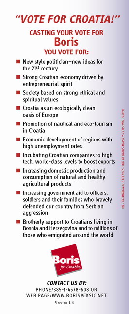 Iskusivši to najbolje tijekom boravka i rada u SAD-u danas sa ponosom mogu reæi da sam uspio u životu. No to je bilo samo ostvarenje mog američkog sna, a na redu je vračanje duga i svojoj domovini. Iako sam stalno bio prisutan u Hrvatskoj kao i ona u mom srcu, odlućio sam nedavno ponuditi pomoæ i na drugačiji način. Na način za koji mnogi, a posebno mladi, nemaju interesa. To je politika.