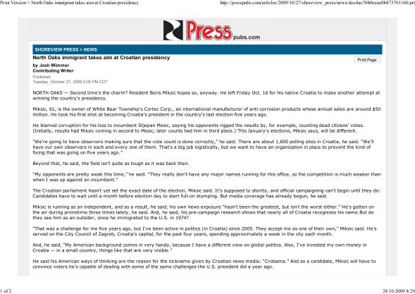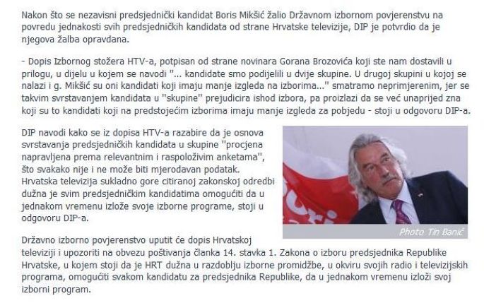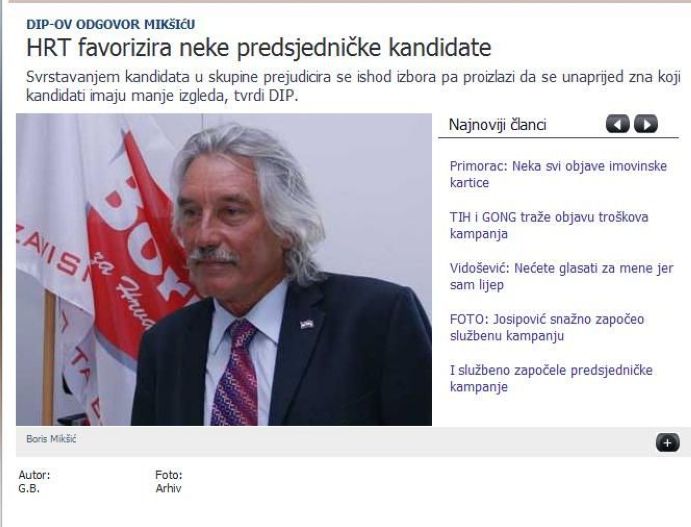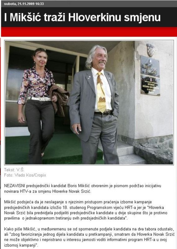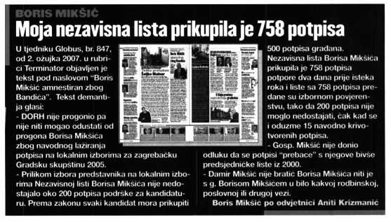 Ove izbore ipak je obilježio Boris Mikšić. Dečko s Trešnjevke koji je vlastitim novcem financirao kampanju, gospodarstveniku bez podrške političkih stranaka, drugi krug pobjegao je u posljednji trenutak. Iza sebe je ostavio iskusnu političarku Đurđu Adlešić, HSP-ovu uzdanicu Slavena Leticu, Tuđmanova maga Ivića Pašalića. Građani su nagradili to što je kampanju financirao vlastitim novcem. Njegov uspjeh jasna je i jaka poruka hrvatskih građana političarima - da im sve manje vjeruju. Klasična politička pljuska. Večernji list, 04. siječnja 2005.