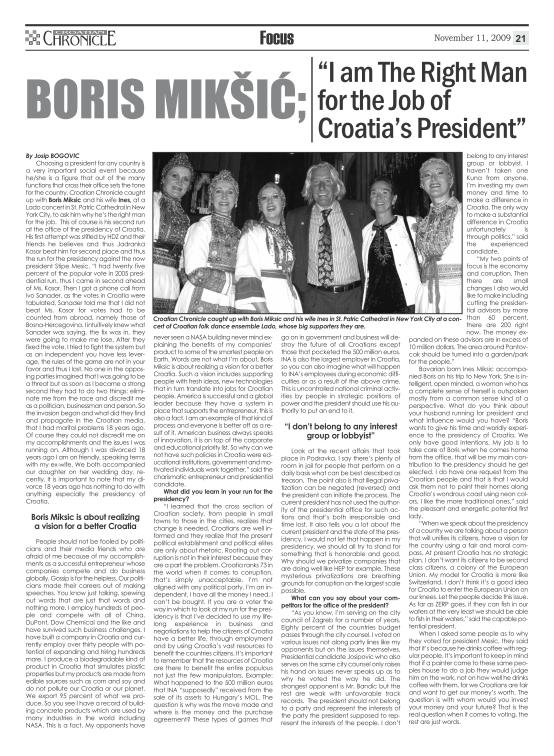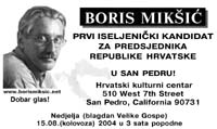 Boris Mikšić je kako u vodećim hrvatskim medijima tako i u američko-hrvatskom tisku najavio svoju predsjedničku kandidaturu na sljedećim predsjedničkom izborima.