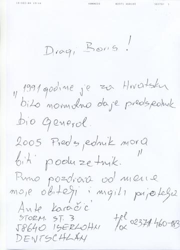 PORUKA BORISOVOG IZBORNOG TIMA: