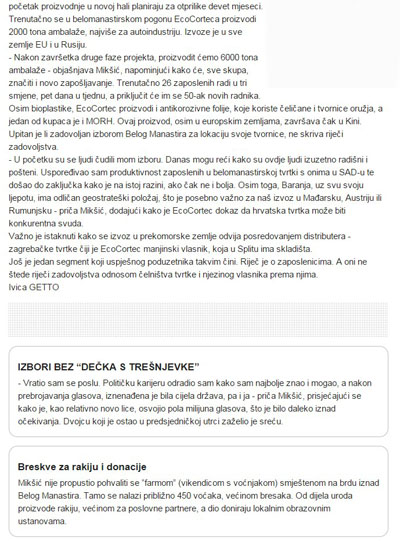 odgovorio da je stalno u Hrvatskoj, jer ima tvornicu u Belom Manastiru u koju je uložio 10 milijuna eura, ali da ga mediji ne prate jer im nije interesantan.