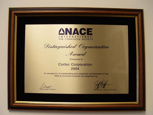 The award cites Cortec for its patents and publications in Europe, Canada, China, Japan,