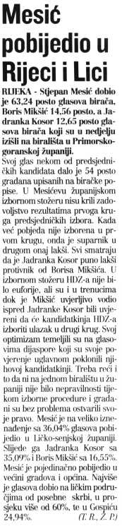 Mesić pobjedio u Rijeci i Lici