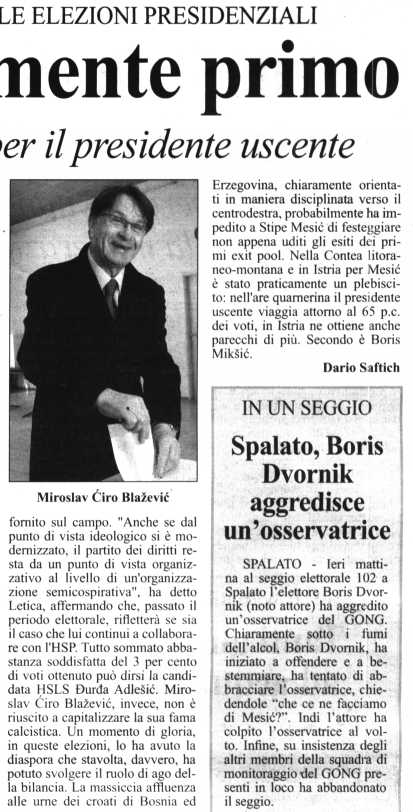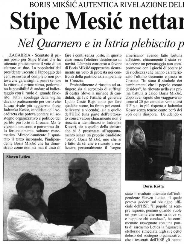 Stipe Mesić nettamente primo (3.1.)