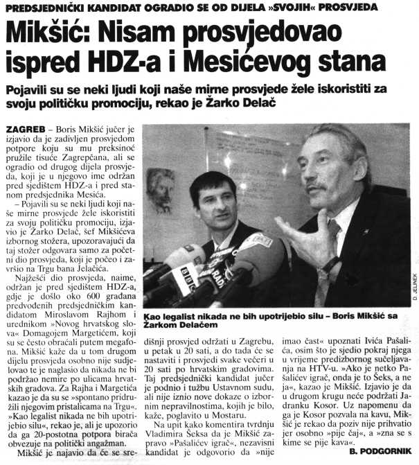 Mikšić: Nisam prosvjedovao ispred HDZ-a i Mesićevog stana (isto u GS, GI i KL)