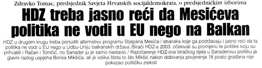 HDZ treba jasno reći da Mesićeva politika ne vodi u EU nego na Balkan