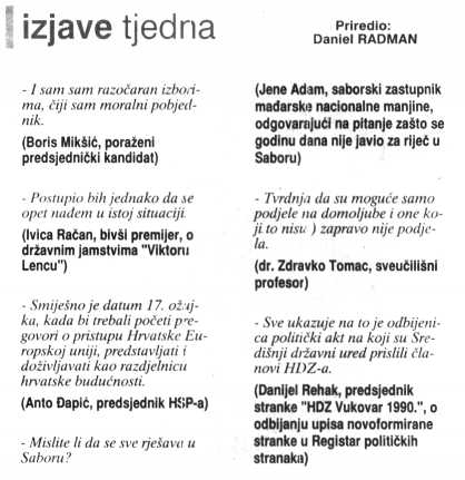 Izjave tjedna