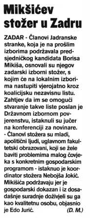 Mikšićev stožer u Zadru