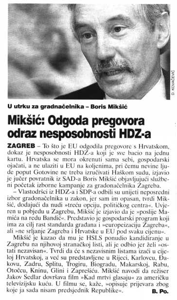 Mikšić: Odgoda pregovora odraz nesposobnosti HDZ-a (isto u KL)