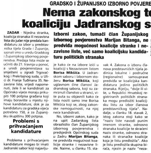 Nema zakonskog temelja za formalnu koaliciju Jadranskog sabora i Borisa Mikši?a