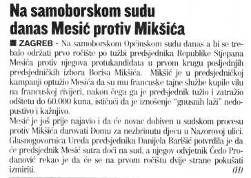 Na samoborskom sudu danas Mesić protiv Mikšića