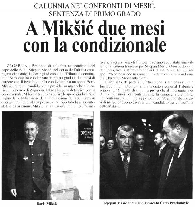 A Mikšić due mesi con la condizionale