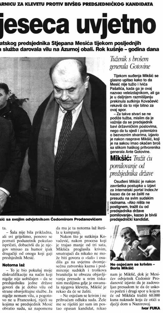 Mikšiću dva mjeseca uvjetno