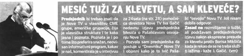 Mesić tuži za klevetu, a sam kleveće?