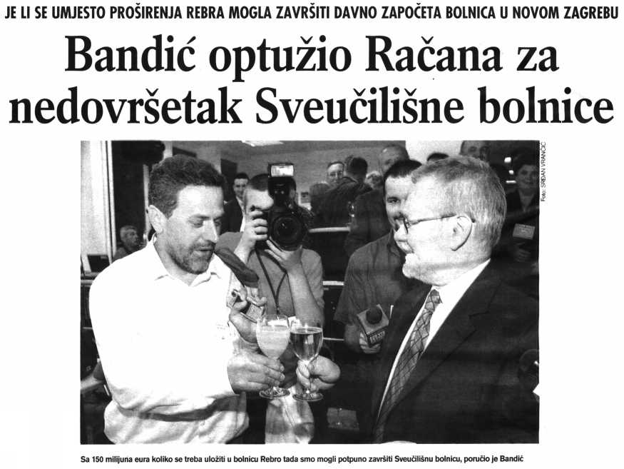 Bandić optužio Račana za nedovršetak Sveučilišne bolnice