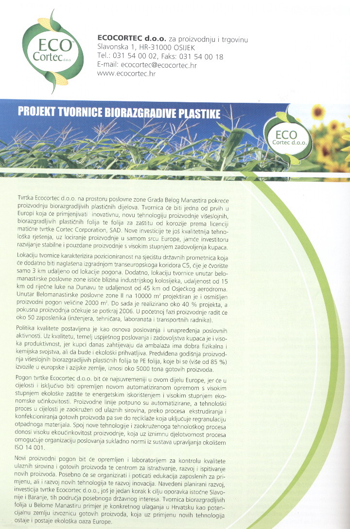Projekt tvornice biorazgradive plastike Beli Manastir