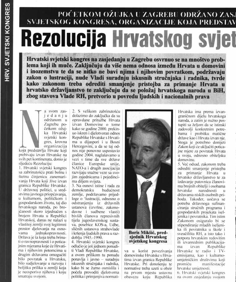 Rezolucija Hrvatskog svjetskog kongresa