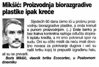Mikšić: Proizvodnja biorazgradive plastike ipak kreće