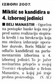 Mikšić se kandidira u 4. izbornoj jedinici