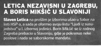 Letica nezavisni u Zagrebu, a Bokis Mikšić u Slavoniji