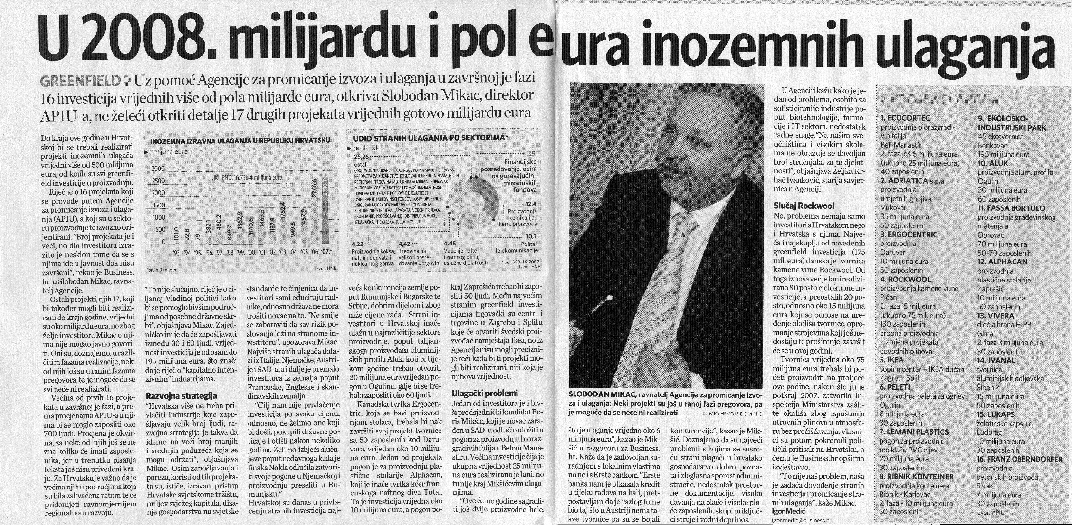 U 2008. milijardu i pol eura inozemnih ulaganja