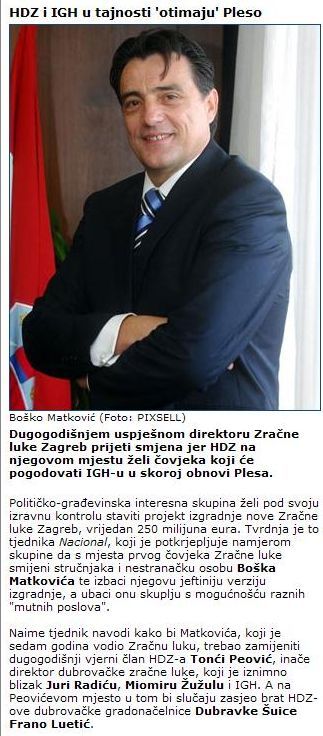 HDZ i IGH u tajnosti 'otimaju' Pleso