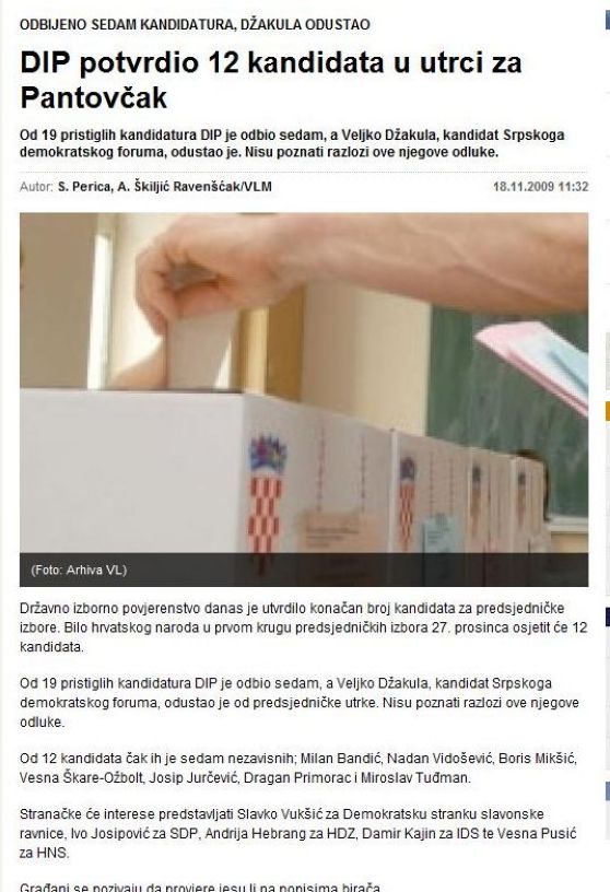 DIP potvrdio 12 kandidata u utrci za PantovĨak