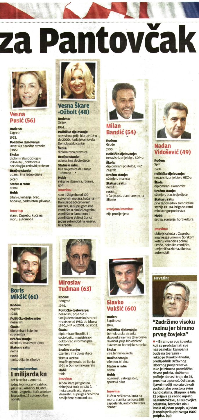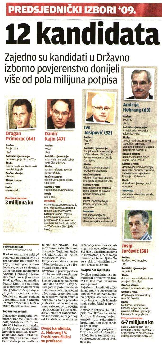 12 kandidata za Pantovčak