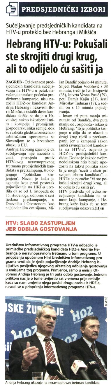 Hebrang HTV-u: Pokušali ste skrojiti drugi krug, ali to odijelo ću sašiti ja