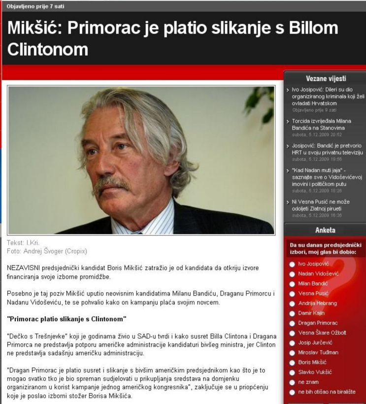 Mikšić: Primorac je platio slikanje s Billom Clintonom