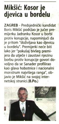 Mikšić: Kosor je djevica u bordelu