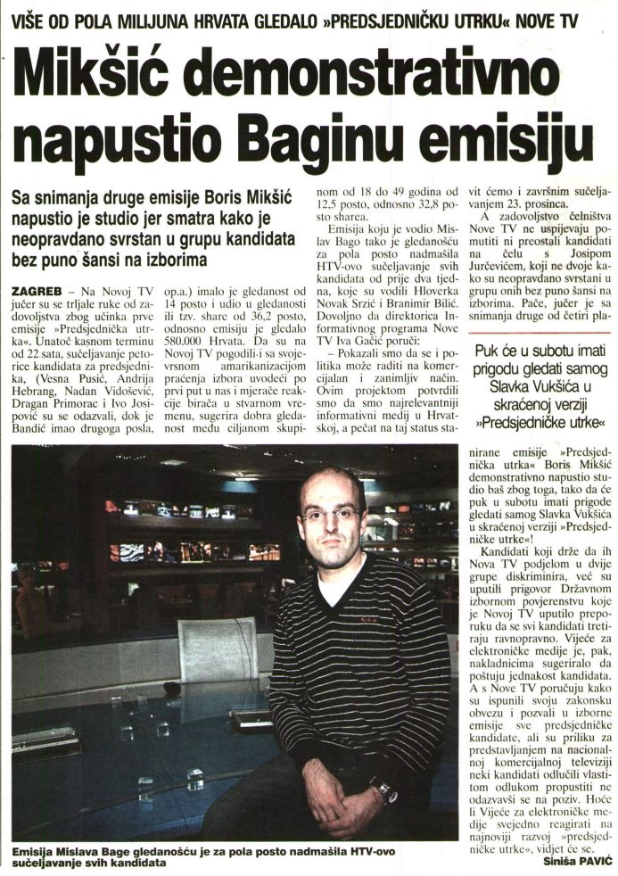 Mikšić demonstrativno napustio Baginu emisiju (isto u GS)