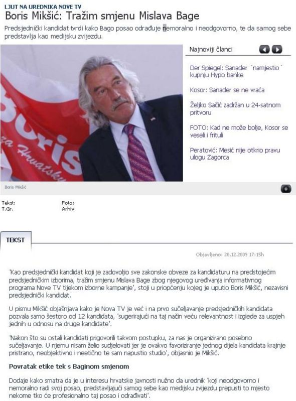 Boris Mikšić: Tražim smjenu Mislava Bage