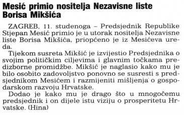 Mesić primio nositelja Nezavisne liste Borisa Mikšića