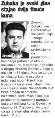 Zubaka svaki glas stajao dvije tisuće kuna