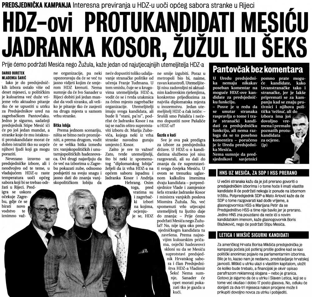 HDZ-ovi protukandidati Mesi?u, Jadranka Kosor, Žužul ili Šeks