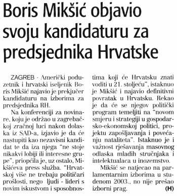 Boris Mikšić objavio svoju kandidaturu za predsjednika Hrvatske