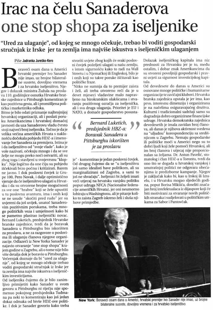 Irac na čelu Sanaderova one stop shopa za iseljenike