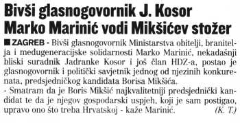 Bivši glasnogovornik J. Kosor Marko Marinić vodi Mikšićev stožer