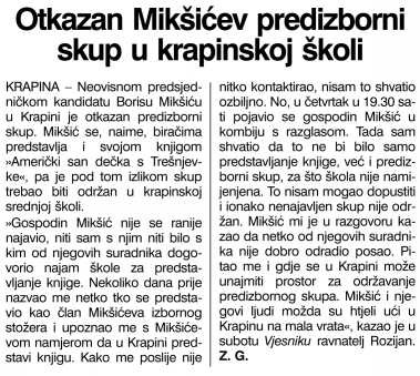 Otkazan Mikšićev predizborni skup u krapinskoj školi