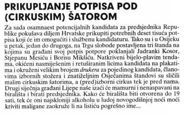 Prikupljanje potpisa pod (cirkuskim) šatorom