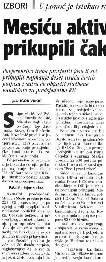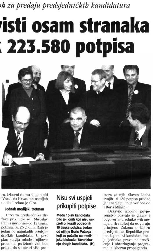 Mesiću aktivisti osam stranaka prikupili čak 223.580 potpisa