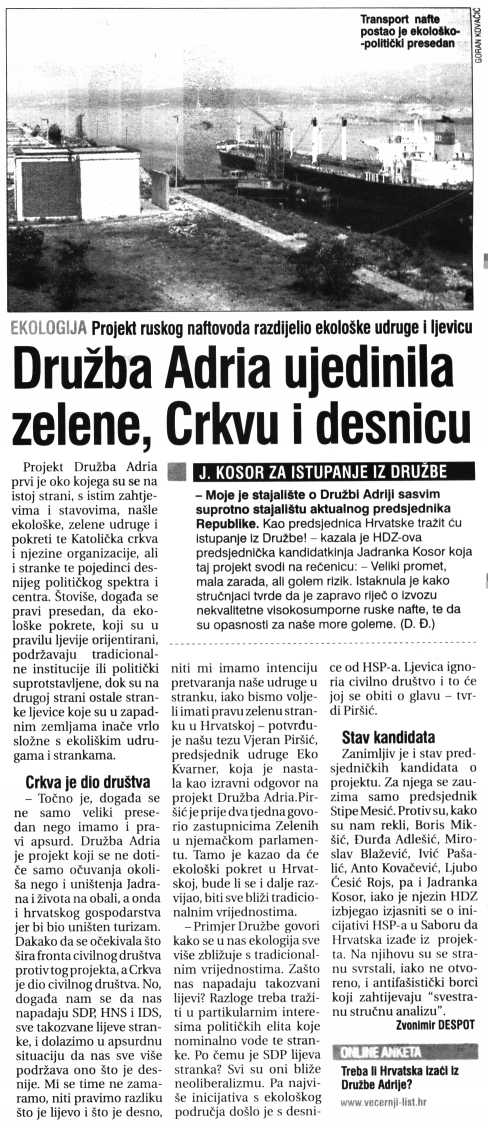 Družba Adria ujedinila zelene, Crkvu i desnicu