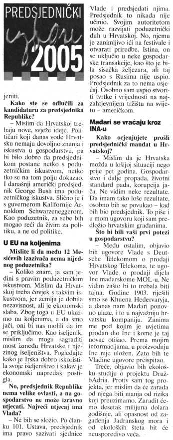 Mesić nema osjećaj za business (isto u GS, GI)