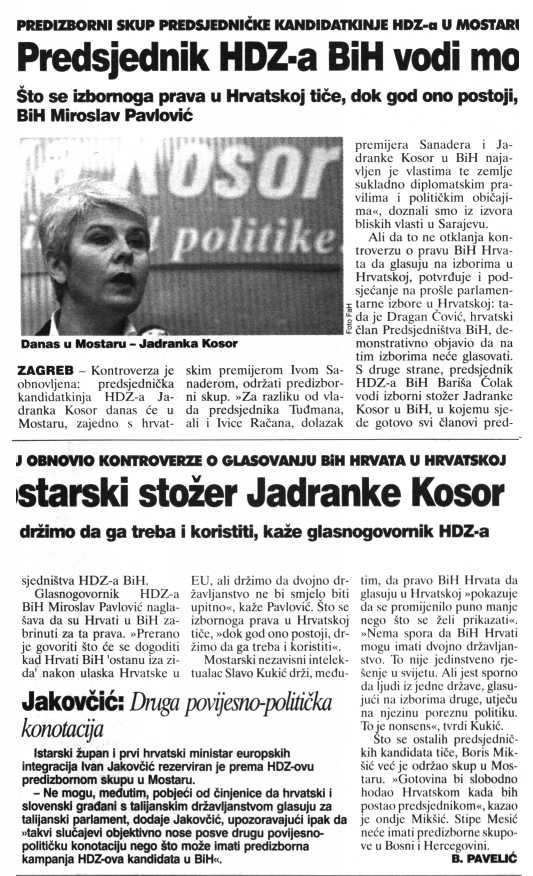 Predsjednik HDZ-a BiH vodi mostarski stožer Jadranke Kosor (isto u KL, GI i ZL)