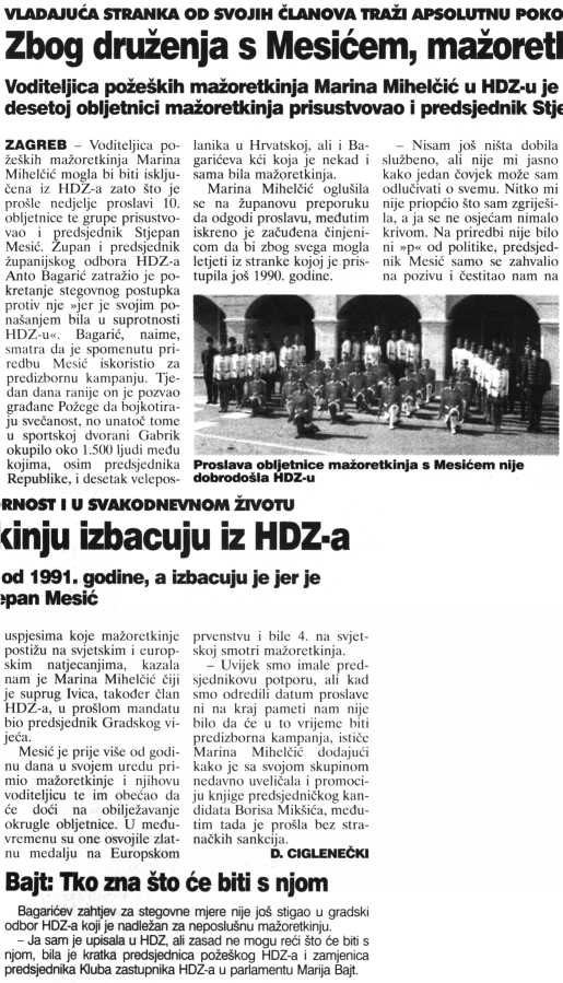 Zbog druženja s Mesićem, mažoretkinju izbacuju iz HDZ-a (isto u KL, GI)