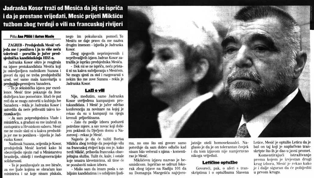 Kosor - Neću se sučeliti s Mesićem dok god me on zove Suzana