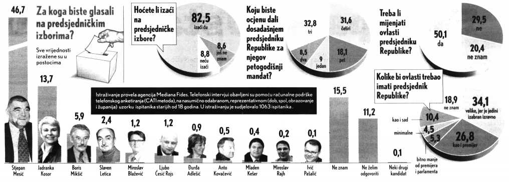 Mesiću popularnost pala za 4 posto, drugi krug sve izgledniji