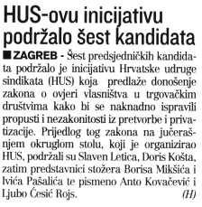 HUS-ovu inicijativu podržalo šest kandidata