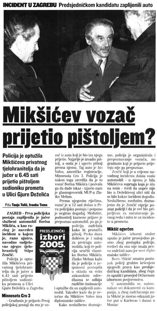 Mikšićev vozač prijetio pištoljem?